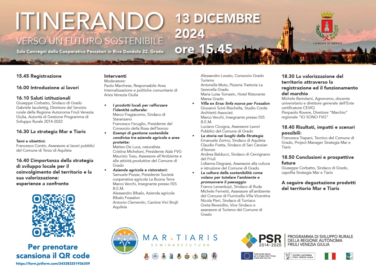 L’appuntamento, previsto per il 13 dicembre 2024 presso la Sala Convegni della Cooperativa Pescatori in Riva Dandolo 22 a Grado, vedrà la partecipazione di amministratori locali, esperti, produttori e operatori del settore, per un confronto sul futuro del territorio e sul ruolo delle strategie locali nello sviluppo sostenibile.