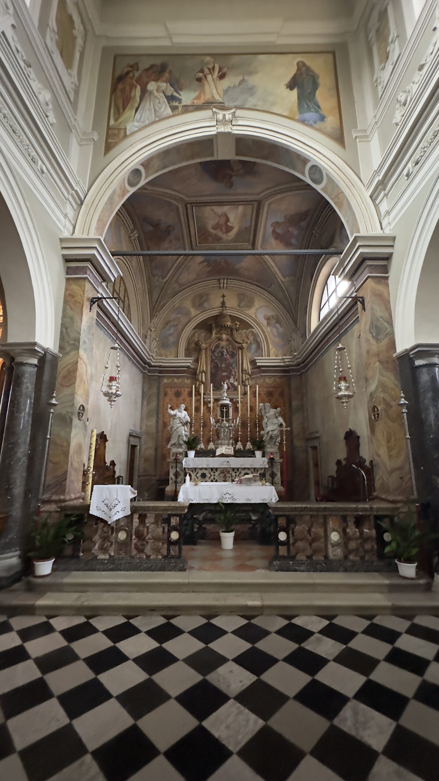 Sopra la porta principale si trova un soppalco con un bellissimo organo del 1799, che funge da cantoria. La struttura esterna della chiesa, in stile barocco, si armonizza perfettamente con il contesto architettonico circostante.